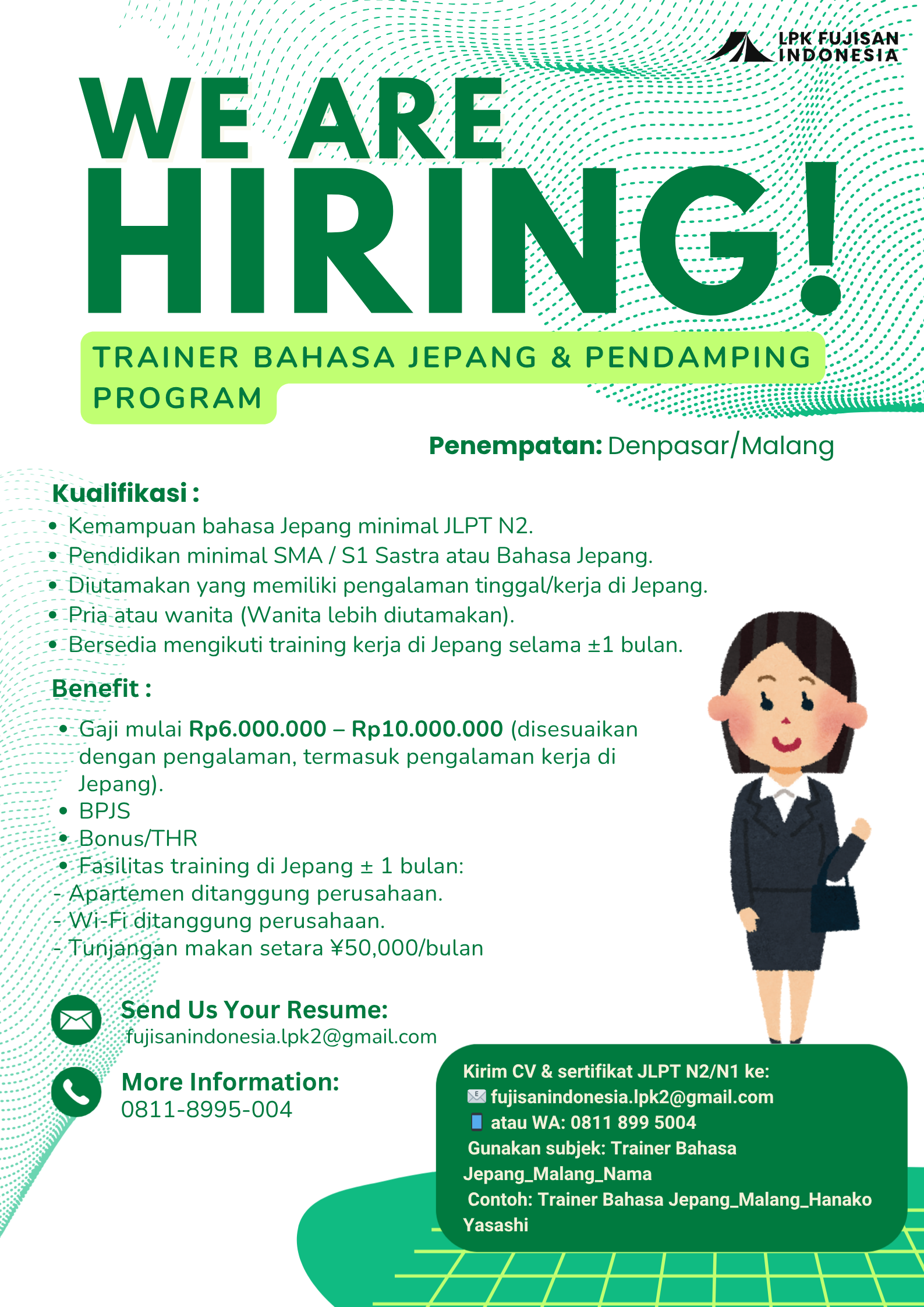 Yuk berkarir bersama LPK Fujisan Indonesia dan bantu wujudkan mimpi generasi muda ke Jepang! 🇯🇵